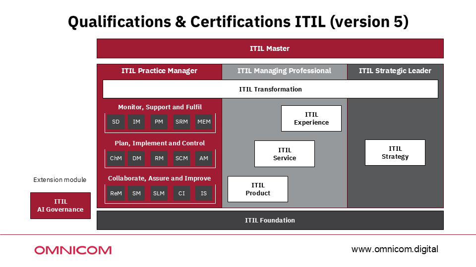 • ITIL Transformation: riadenie organizačnej zmeny a zlepšovania.
