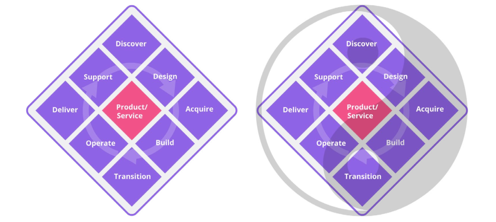 V priebehu životného cyklu sa zameranie manažmentu presúva medzi digitálnym produktom a digitálnou službou: